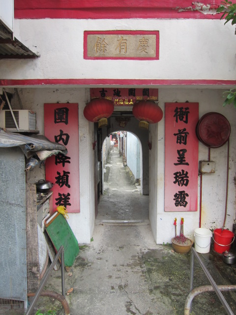 從外面看衙前圍村,一個「慶有餘」的大門。就和新界的圍村一個樣,但在九龍看到此圍村,總是件新鮮事 – 因為印象中圍村村民都是新界人新界鄉紳;那些佈告板,都很停留在上一個世紀;圍村吃飯飲橙汁,寫明是「美國橙汁」;這種寫法,從小到大都未見過,雖據說我出生前有些時間是這樣寫的。