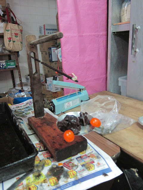 稍有空檔,事頭婆女兒知道筆者對舊物有興趣,也爽快地帶了我去參觀他們的舊址 - 以前仁利不在這個對正菜站的當眼位置,在後一條街;以前下舖上居,現在都是用來住了,不過舊招版舊閘還保留著,更重要的,還是廚房那個煮蓮蓉的爐 - 開業五十多年來都是用這個爐煮蓮蓉,還是用柴燒的!