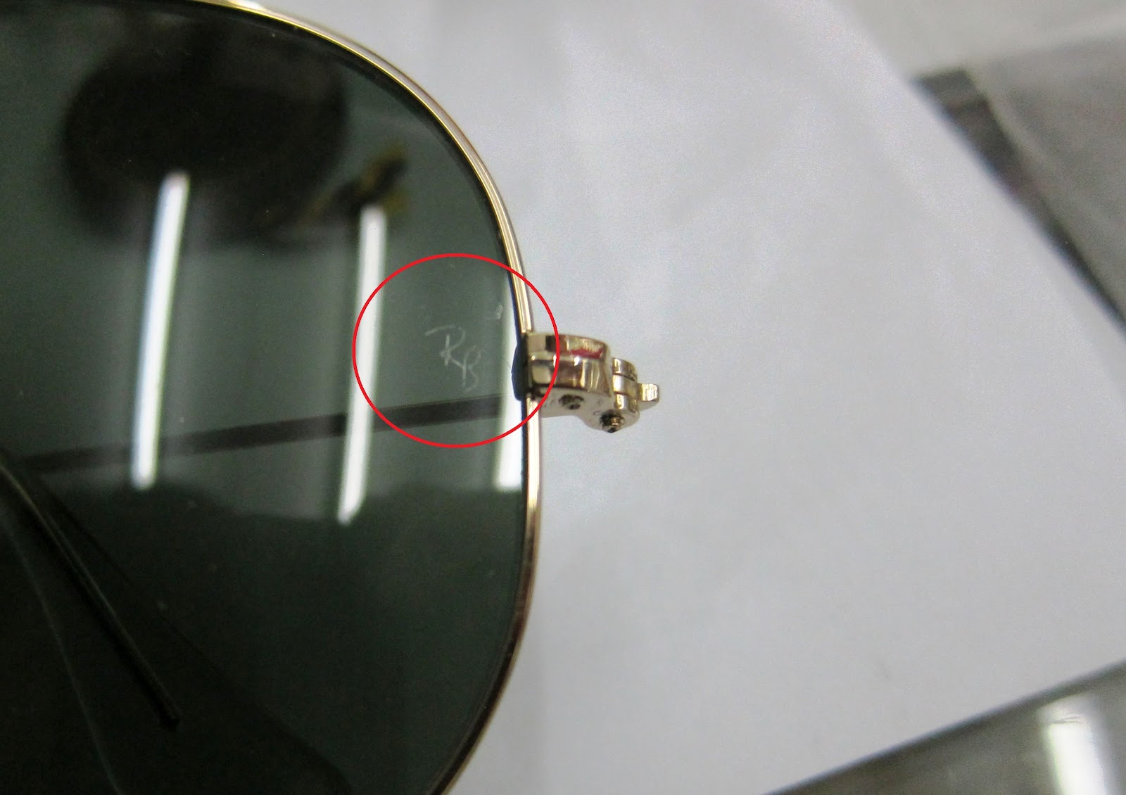 舊款Ray-ban鏡片上的"BL"字樣 |