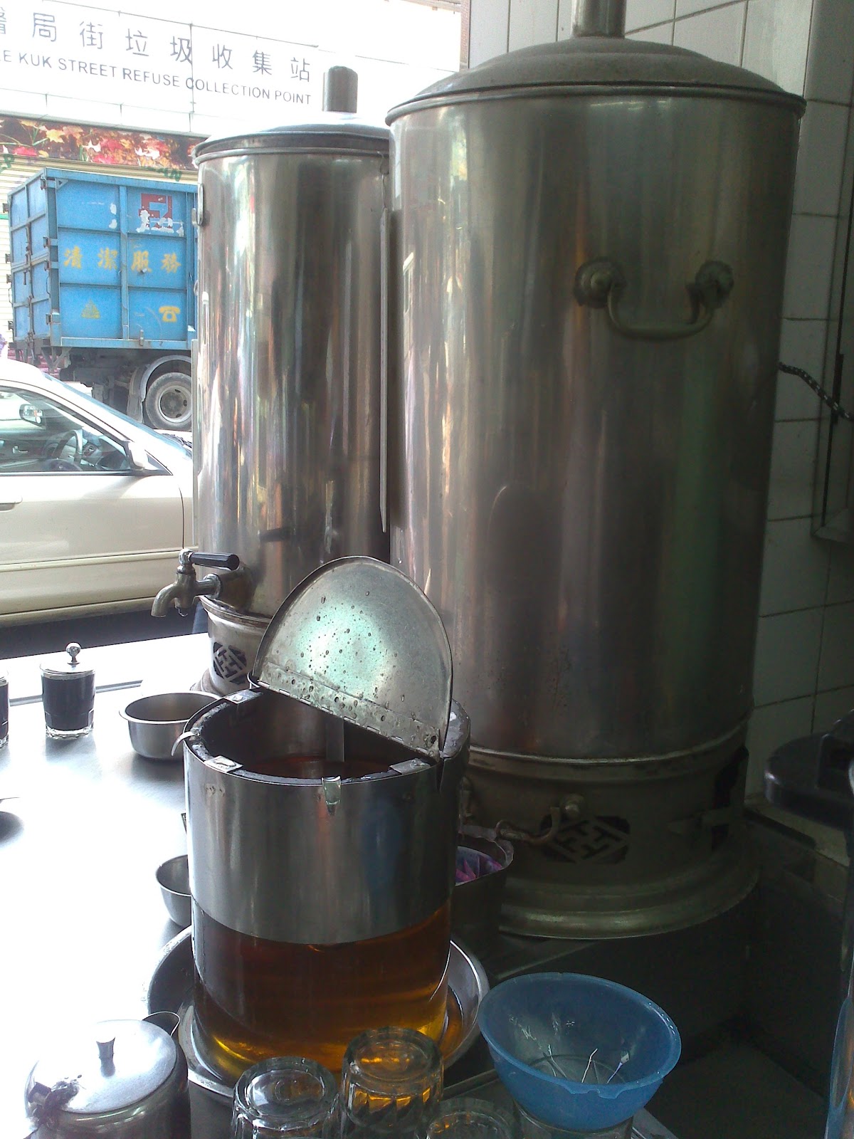 「哈!但以前的配方是要再甜一點的!」聽畢我的意見,梁小姐笑道:「以前的人口味較重...可能因為日子較清苦啦,偶爾花上點錢去飲涼茶,當然想飲甜一點的;現在的人講究健康,所以就減了點甜;當一些老顧客抱怨『淡口咗喎!』我就為他們加蜜糖囉....哈哈。」話雖如此,身為現代人的我,覺得現代減甜版的味道已非常不錯 - 也許待感冒全清後,再來一試元祖配方的銀菊露吧!