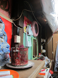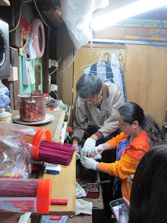 門口看是懷舊,但走進去,卻又把我拉回現實;我們的目的地是范先生的刀仔店 (連居所及小型工場);但范生的這楝小小的房子,相鄰的,都清拆殆盡,只剩下支架;很冷清的景象,就真的剩下范生的小小工場;一行八人,連范生,個個站著聽其講解,都只是勉強裝得下,遲來者都只能在門外聽。
