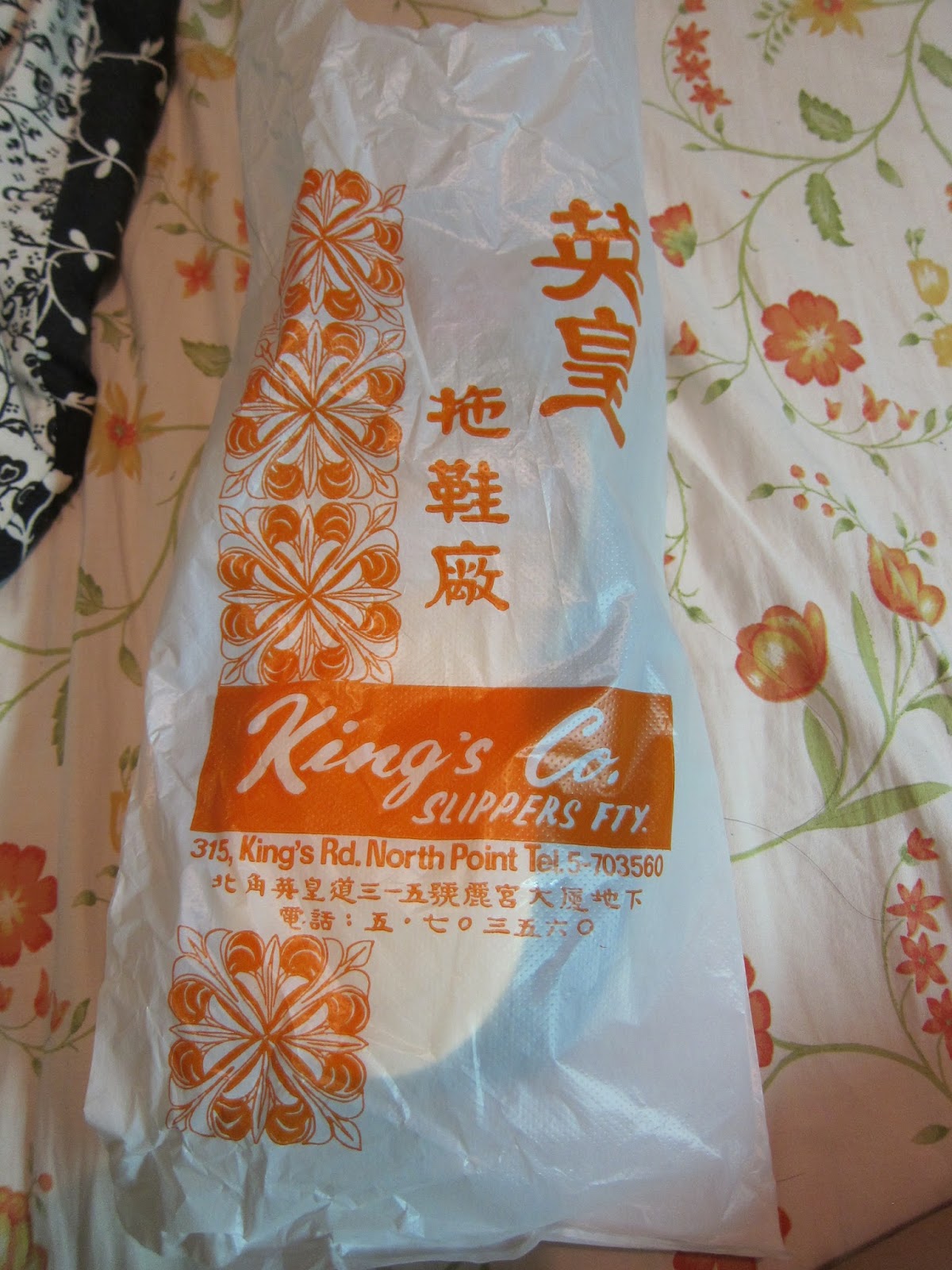 | 裝拖鞋的膠袋, 也是沿用多年的款式 |