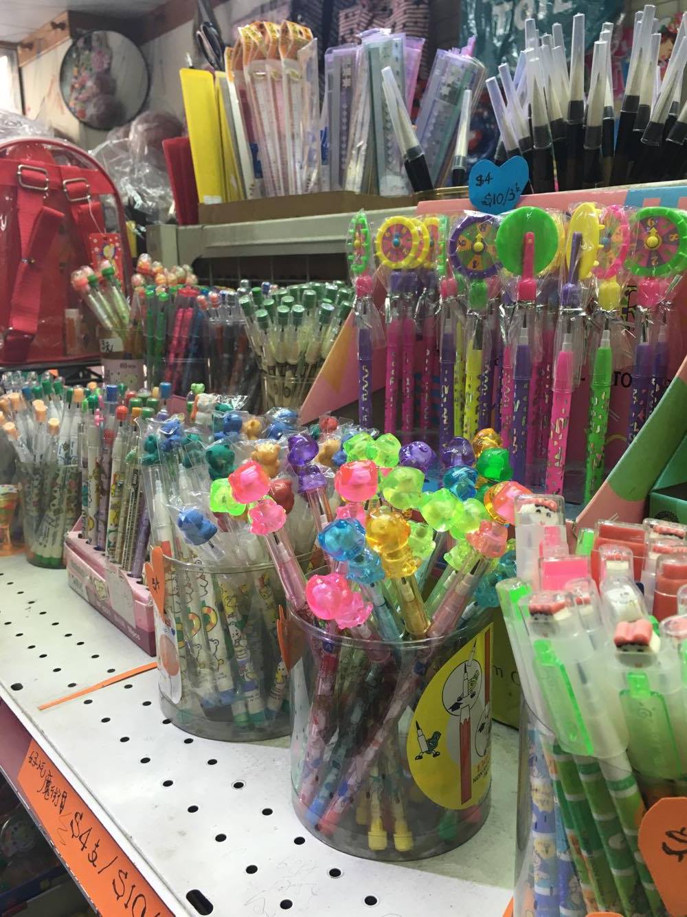 「這些是花式文具。」何姑娘說;花式文具的定義,就是除了實用外,還有不同花款的文具。何姑娘自六七十年代起開始從事文具批發,一做幾十年;見證八九十年代花式文具的全盛時期 -正正就是當年的小學雞,最喜歡到文具舖流連的年代。那些年,台灣製的花式文具還遠銷至美國,在中國也大受歡迎;那些年還未完全開放,只能靠運水貨。那些年,何姑娘形容是:「追貨都追唔切。」